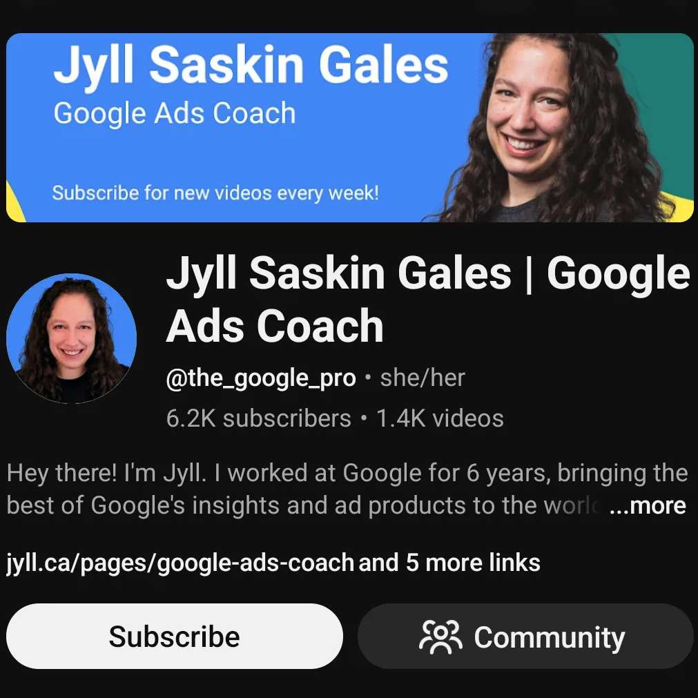Jyll has been consistently posting educational Google Ads videos on YouTube since 2021 as @the_google_pro